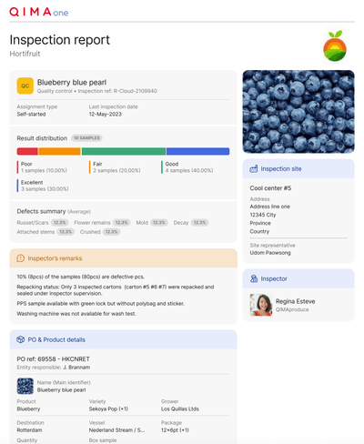 Der Bericht steht außerdem in Ihrem persönlichen QIMA-Dashboard zur Verfügung, das sowohl online als auch auf dem Mobilgerät zugänglich ist. Dies gibt Ihnen die Flexibilität, informierte Entscheidungen für Ihre Lieferung zu treffen – jederzeit und überall. Der Zugang zu Berichten kann zwischen Einzelhändlern und Lieferanten geteilt und kontrolliert werden.
